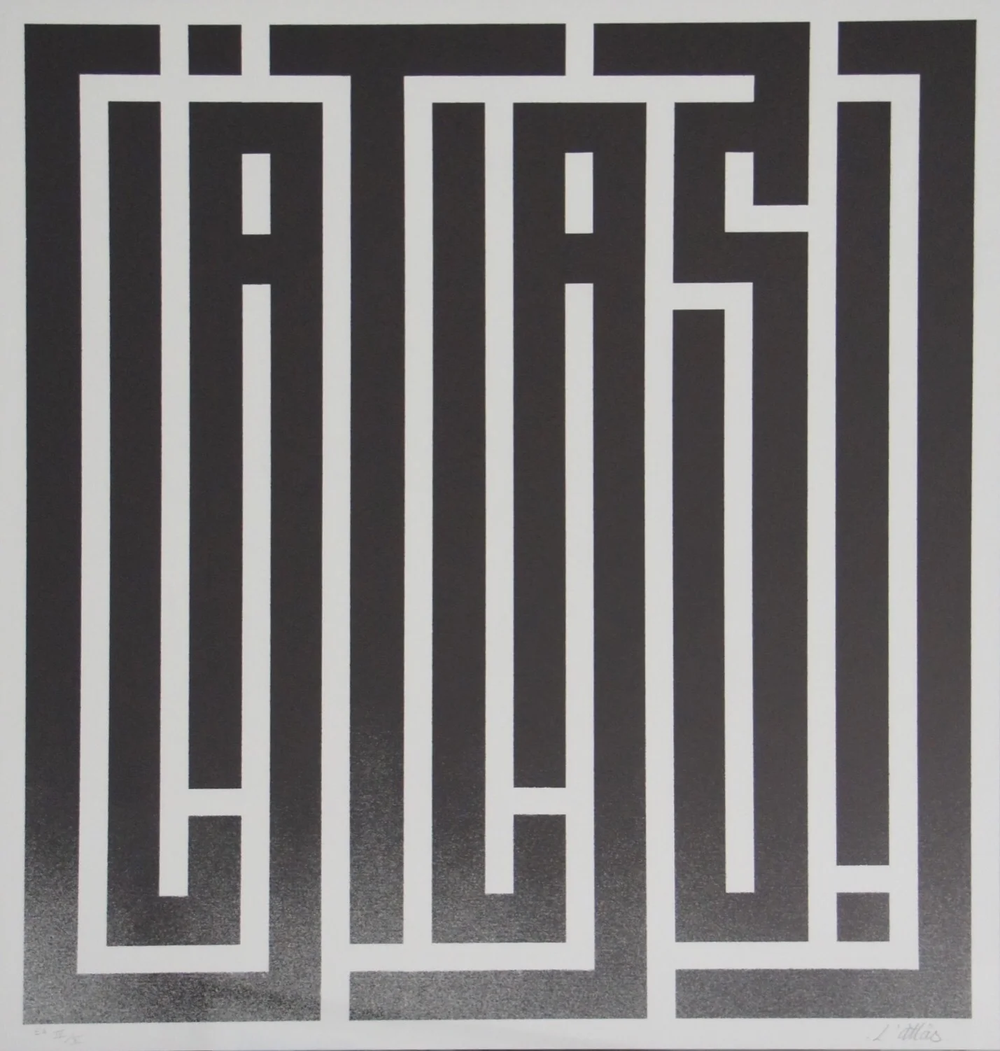 Entre labyrinthe et calligraphie, L’ATLAS joue toujours de son art avec talent. Chacun ira y chercher son chemin ou le nom qui y figure caché. FADE séduira les amateurs de cet artiste international par la sobriété de son style.
