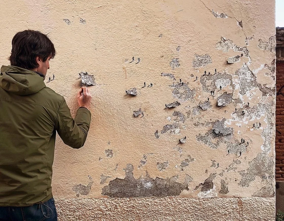 Pejac est un artiste espagnol contemporain connu pour ses interventions poétiques et engagées. Son travail combine minimalisme, illusion visuelle et messages critiques sur l’environnement, la société et la liberté.